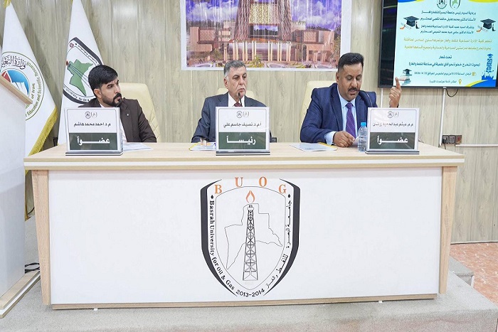 نظّمت "كليّة الإدارة الصناعيّة للنفط والغاز" صباح اليوم الخميس (23 نيسان 2026) مؤتمرها السنوي السادس لمناقشة بحوث تخرّج طلبة الأقسام العلمية في الكليّة، للدراستين الصباحية والمسائية، للعام الدراسي (2025-2026)، تحت شعار: (بحوث التخرّج: خطوة نحو آفاق علمية في صناعة النفط والغاز)، جرت خلال الافتتاح ثلاث جلسات نقاشية، الجلسة الأولى لأحد طلبة "قسم اقتصاديات النفط والغاز"، والجلسة الثانية لأحد طلبة "قسم إدارة وتسويق النفط والغاز"، والجلسة الثالثة لأحد طلبة "قسم إدارة المشاريع النفطية".